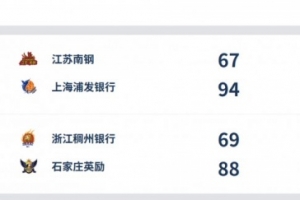 江苏南钢 67-94 上海浦发银行。上海队卡特36分9助攻,赫伯德18分12篮板,徐娜也贡献10分,不过提前5犯离场。江苏队投篮命中率不足4成,三分线外20次出手只命中2球,近期一直无法取得连胜,许晨妍和洪欣妍分别贡献12分。