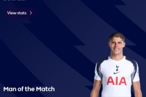 体育资讯1月25日讯 英超第23轮,热刺2-2战平伯恩利。赛后,英超联赛官方宣布,热刺后卫范德芬当选本场比赛最佳球员。