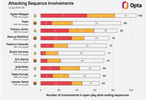 根据OptaJose的统计,基利安-姆巴佩本赛季西甲联赛中参与了106次有效进攻,位列所有球员之首。