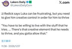 JJ·雷迪克表示,卢卡有时会让人感到沮丧,但必须给予他创造性掌控权,他才能真正闪耀。