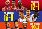 如今雷霆队开局前13场战绩比肩1995-96赛季的公牛,有望成为下一支单赛季70+胜场的球队。