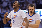 此役,杜兰特全场出战31分钟,他16投7中,三分5中2,罚球8中7,得23分5板4助2断,正负值为+15;亚当斯出战17分钟,投篮5中2,罚球2中1,拿下5分8篮板4助攻2盖帽,正负值+21全队最高。