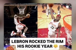 在本场比赛开始之前,詹姆斯转发了几张自己在新秀赛季扣篮的瞬间。