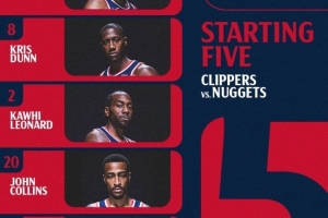 体育资讯1月31日讯 快船客场战掘金,首发阵容出炉。