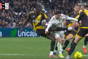 体育资讯02月01日讯 皇马vs巴列卡诺第98分钟,迪亚斯在对手禁区内倒地,裁判判罚点球!