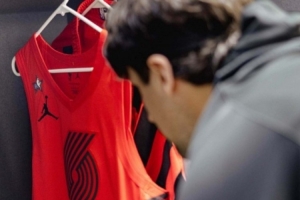 今天的比赛,阿夫迪亚也将穿上带有全明星特别补丁的球衣比赛。赛前,阿夫迪亚也仔细看着这件特别的球衣。