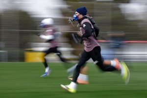 体育资讯2月4日讯 皇马今日进行了训练,以备战西甲第23轮客战瓦伦西亚的比赛。皇马官方晒出球队训练图,球员们佩戴了体能教练平图斯特制的面罩。