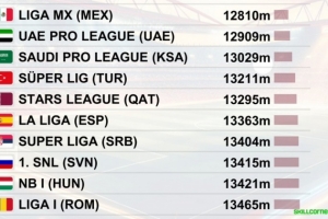 体育资讯2月6日讯 瑞士足球天文台(CIES)统计了30个正在进行的顶级联赛的防守数据,以非门将球员在球队无球状态下每90分钟跑动距离作为依据,列出了防守投入最低的10个联赛。