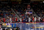 墨菲压哨三分进了,第一节湖人35-28鹈鹕