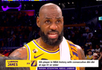 根据数据统计,詹姆斯是历史第四位41岁后连续两场两双的球员,此前有帕里什、斯托克顿和贾巴尔。