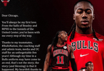 “虽然我身披公牛球衣的日子已经结束但我由衷的感谢公牛让这一切成为现实,当我满怀信心迈入上帝为我开启的新大门时,请相信我永远不会忘记自己的来处,你可以把孩子带离芝加哥,但永远无法把芝加哥从孩子的心中带走!”