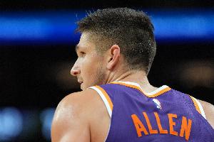 格雷森·阿伦因右大腿挫伤将缺席明天对阵老鹰的比赛。