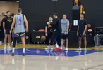 心情不错😎东契奇在训练中扔进一记后场三分🤯
