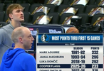 据美国电视台统计,弗拉格生涯前15场比赛得到233分,排名独行侠队史第四,在他之前一位的是东契奇。