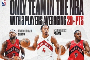 体育资讯11月6日讯 NBA Canada报道,猛龙队是联盟目前唯一一支有三位球员场均得分超过20分的球队(最新数据显示掘金也有三人场均得分过20分)。