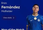 最终经过英超官网球迷投票,恩佐以39%的得票率力压佩德罗-内托(37%)当选全场最佳球员。