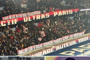 巴黎球迷此役拉出横幅,祝贺李刚仁(亚足联最佳国际球员)和阿什拉夫(非洲足球先生)获奖。