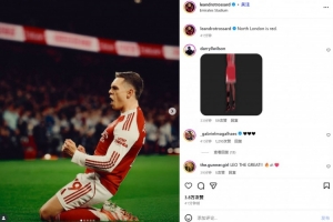 他也在赛后通过社媒晒出自己的滑跪庆祝照,并配文:“北伦敦是红色的!”