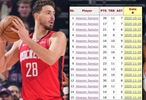 在本赛季之前,NBA历史上没有任何一位中锋球员做到过这一点。而这赛季,约基奇(连续17场)和申京都做到了。