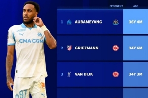 德转统计表明,奥巴梅扬成为本赛季欧冠年纪最大的进球球员,今天他的具体年龄为36岁4个月。