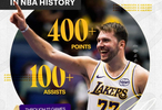 此役过后,东契奇本赛季出战12场已达成400分100助,成为历史上单赛季达此数据最快的球员。
