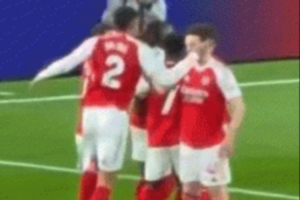 在北伦敦德比3-0击败热刺的比赛中,埃泽的一粒进球后,萨利巴赶来庆祝时“怒扇”赖斯一记耳光🤣