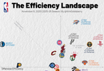 赛季至今各队攻防表现(横轴进攻,纵轴防守)