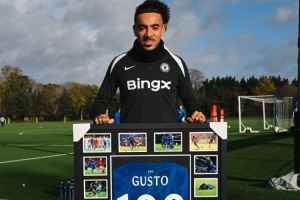此役是古斯托为切尔西出战的第100场比赛,他总计打进1球,助攻14次。古斯托获赠蓝军生涯百场纪念球衣,切尔西社媒晒出他与纪念球衣的合照。
