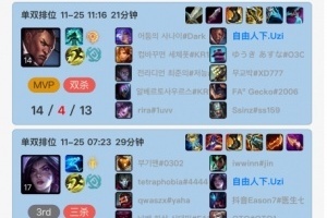 体育资讯11月29日讯 根据排位统计小程序显示,Uzi在25日之后就未登上韩服账号。