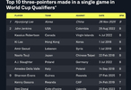 本场比赛,韩国球星李贤重发挥出色,尤其是他命中了9记三分。据FIBA官方统计,李贤重创下了FIBA自2017年实施新的世预赛制度后的个人单场三分命中数纪录。此前的纪录为8记三分。