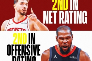 火箭媒体rocketsnationcp写道:进攻前三,防守也前三?这种在联盟中极为罕见的数据组合通常意味着...夺冠热门。
