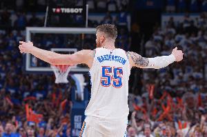 GIF-哈滕血帽威少,然后背筐出手砸篮板上方了