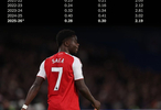 TA:萨卡对阵切尔西时收获了近一年来的首次英超助攻,但这并不意味着他期间在创造力方面毫无建树。