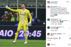 体育资讯12月4日讯 国际米兰门将何塞普·马丁内斯在Instagram发文,谈到球队晋级意大利杯八强。