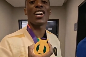 在感谢完陪伴自己自己尿检的队医之后,身着冠军夹克的法比奥终于走出了兴奋剂检测室,这时的时间是23点07分。虽然距离捧杯已经过去了2个多小时,但是安哥拉人依然难掩自己的激动情绪,他反复说着这样一句话:“我终于有冠军了,我的荣誉薄上终于从零变成1了,感谢大家,我等不及和他们一起庆祝了。”