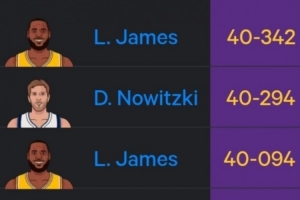 至此,詹姆斯成为了史上砍下29+年纪最大的球员(40岁342天),力压诺维茨基(40岁294天)。且前十榜单中9次是詹姆斯。