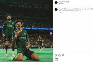 他也在赛后通过社媒晒出自己的滑跪庆祝照,并配文:“哇,真是个特别的夜晚!一场酣畅淋漓的胜利,还有我的欧冠首球!球迷们的支持再次令人感到难以置信💫”