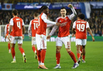 再加上非常及时地闪现后点,将苏维门迪的传中顶进,马杜埃凯本场算是脚法和嗅觉都好好露了一手,不说能在右边锋位置竞争中赢萨卡,当个本场最佳还是毫无问题,也能提醒阿尔特塔“有多种好选择就该多轮换用用”。而在马杜埃凯的另一侧,马丁内利也进了一个非常精彩的内切爆射兜远角,双马拍门好不威风。说来也有趣,马丁内利和马杜埃凯都是“英超平淡欧冠风光”,前者已成首位欧冠连续5场进球的阿森纳球员,后者则是首位加盟枪手后前三球全部在欧冠打进的选手。