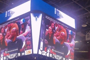 比赛期间,大屏幕晒出马刺名宿“海军上将”大卫·罗宾逊来到现场看球的画面,观众们报以热烈欢呼声。
