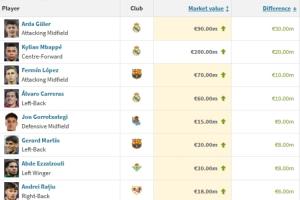 1.居莱尔(皇马)9000万欧(+3000万)