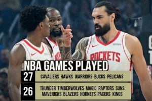 “火箭目前仅打22场,联盟最少,而有5支球队打了27场比赛。”