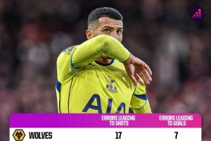 体育资讯12月17日讯 Opta统计了本赛季英超各队失误导致丢球的数量,并列出榜单,狼队7球居首,热刺、桑德兰、诺丁汉森林5球次席。