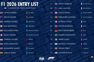 体育资讯12月19日讯 F1官方公布2026赛季车手车号,新科车手冠军诺里斯成为1号车手,维斯塔潘3号,博塔斯77号。