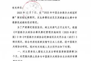 2025年12月7日,在“2025年中国业余高尔夫球冠军赛”第四轮比赛期间,发生参赛运动员及其球童在比赛中串通修改成绩的恶劣情况。