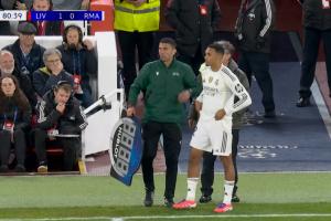 体育资讯11月05日讯 利物浦vs皇马第81分钟,阿诺德登场换下居莱尔,安菲尔德嘘声震天!