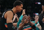 文班亚马赛后引领马刺球迷维京战吼庆祝胜利