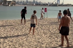 巴萨边锋亚马尔正在迪拜度假,这位18岁的球员现身迪拜海滩,加入一场沙滩足球赛,与孩子们一起踢球。