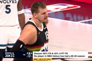 NBA历史上还没有球员能在一个赛季中同时达到60%的投篮命中率和40%的三分球命中率