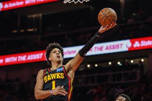 上半场,老鹰球员杰伦·约翰逊表现不错,场上依旧很全能,在19分钟的时间里,投篮7中4,三分球2中0,罚球3中2,拿到10分5篮板6助攻的数据。