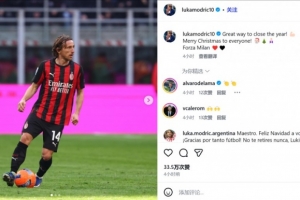 莫德里奇社媒:以最好的方式结束这一年,大家圣诞快乐,加油米兰